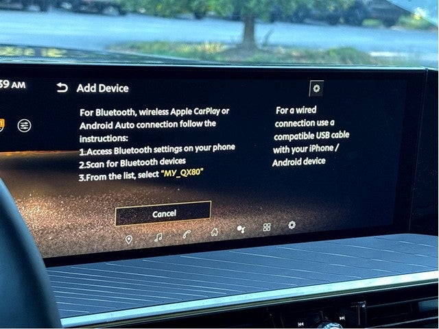 - Radio: Klipsch Reference Premiere Audio System -inc: 24 speakers w/Active Sound Enhancement (ASE), 3D audio, demo mode, individual audio headrest speakers for driver and front passenger, 14.3" infotainment screens w/front control panel, Google built-in w/navigation, Amazon Alexa w/hotword, Bluetooth® hands free phone and audio streaming, wireless Apple CarPlay and Android Auto, hybrid radio, SiriusXM w/360L, INFINITI InTouch services, 5G Wi-Fi hotspot and 2 USB type-C media ports w/iPod interface