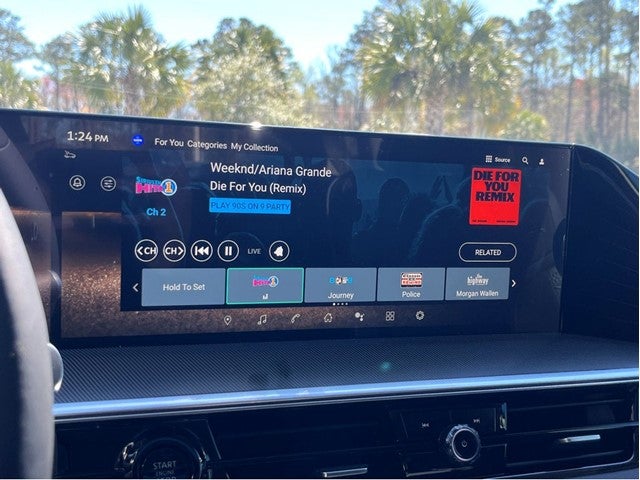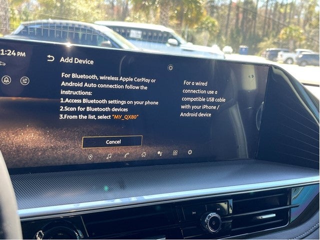- Radio: Klipsch Premium Audio System w/14 Speakers -inc: Active Sound Enhancement (ASE), demo mode, dual 14.3" infotainment screens w/9" front control panel, INFINITI InTouch services, 4G Wi-Fi hotspot, Google built-in w/navigation, Amazon Alexa built-in w/hotword, Bluetooth® hands free phone and audio streaming, wireless Apple CarPlay and Android Auto, hybrid radio, SiriusXM w/360L (3-month trial included) and 2 USB type-C ports