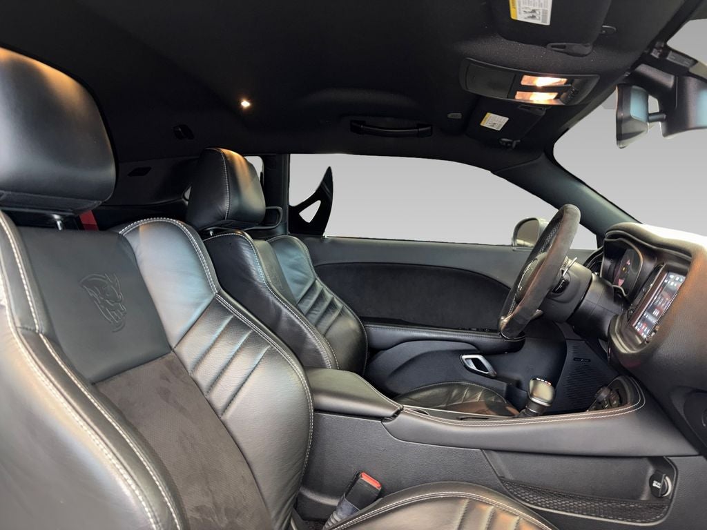 Quick Order Package 26M. Leather Rear Seat Option: Child Seat Upper Tether Anchorages; Demon Logo Laguna/Alcantara Seat; Center Rear 3-Point Seat Belt; Heated Front Seats; Rear 60/40 Folding Seat; Luxury Front and Rear Floor Mats; Rear Armrest with Cupholder Seat. Leather Seats Comfort Audio Group: 18 Speakers Premium Audio System; Demon Logo Laguna/Alcantara Seat; Power Tilt/telescope Steering Column; Front Passenger Seat Belt Alert; Front Passenger Seat; Heated Front Seats; Harman/kardon GreenEdge Amp; Bright Pedals; Heated Steering Wheel; Front Floor Mats. Demon Vehicle Storage Package: MOPAR Battery Manager; Demon Car Cover. Painted Black Satin Hood. Gas Guzzler Tax. Red Seat Belts. Trunk Carpet Kit. **Equipment listed is based on original vehicle build and subject to change. Please confirm the accuracy of the included equipment by calling the dealer prior to purchase.**