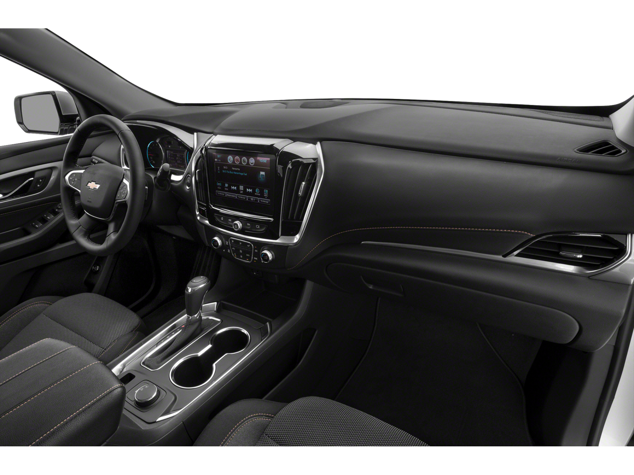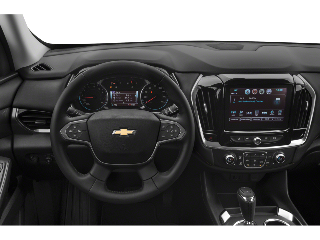 Vaden is pleased to offer this Satin Steel Metallic 2019 Chevrolet Traverse 3LT with Jet Black Leather... Beautifully equipped with LT Premium Package (120-Volt Power Outlet, Bose Premium 10-Speaker Audio System Feature, Radio: Chevrolet Infotainment AM/FM Stereo w/Navigation, Rear Camera Mirror, Surround Vision, and Wheels: 20" Machined Face Aluminum), Preferred Equipment Group 3LT, 3.49 Axle Ratio, 3rd row seats: split-bench, 4-Wheel Disc Brakes, 6 Speakers, 7-Passenger Seating (2-2-3 Seating Configuration), 8-Passenger Seating (2-3-3 Seating Configuration), ABS brakes, Air Conditioning, Alloy wheels, AM/FM radio: SiriusXM, Apple CarPlay/Android Auto, Automatic temperature control, Brake assist, Bumpers: body-color, Compass, Delay-off headlights, Driver door bin, Driver vanity mirror, Dual front impact airbags, Dual front side impact airbags, Electronic Stability Control, Emergency communication system, Four wheel independent suspension, Front anti-roll bar, Front Bucket Seats, Front Center Armrest, Front dual zone A/C, Front fog lights, Front reading lights, Fully automatic headlights, Garage door transmitter, Heated door mirrors, Heated front seats, High-Intensity Discharge Headlights, Illuminated entry, Leather-Appointed Seat Trim, Low tire pressure warning, Occupant sensing airbag, Outside temperature display, Overhead airbag, Overhead console, Panic alarm, Passenger door bin, Passenger vanity mirror, Power door mirrors, Power driver seat, Power Liftgate, Power passenger seat, Power steering, Power windows, Premium audio system: Chevrolet MyLink, Radio data system, Radio: Chevrolet Infotainment AM/FM w/8" Screen, Rear air conditioning, Rear anti-roll bar, Rear reading lights, Rear window defroster, Rear window wiper, Remote keyless entry, Roof rack: rails only, Security system, Speed control, Speed-sensing steering, Spoiler, Steering wheel mounted audio controls, Tachometer, Telescoping steering wheel, Tilt steering wheel, Traction control, Trip computer, Turn signal indicator mirrors, Variably intermittent wipers, Voltmeter, and Wheels: 18" Bright Silver Painted Aluminum!