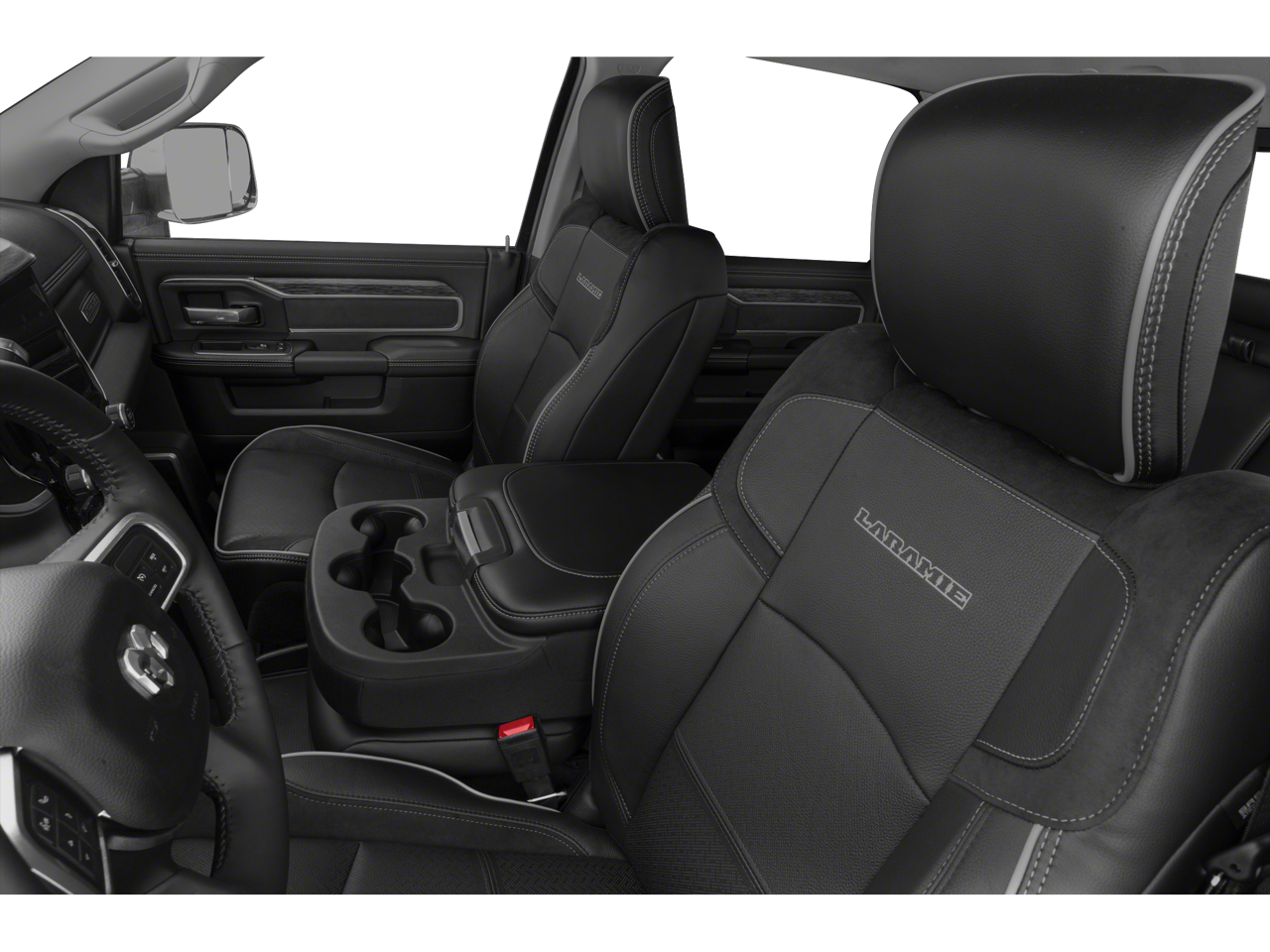 Quick Order Package 2HH Laramie. Laramie Level 1 Equipment Group: Remote Tailgate Release; Auto High Beam Headlamp Control; Blind Spot and Cross Path Detection; Rain Sensitive Windshield Wipers; Power Adjustable Pedals with Memory; Foam Bottle Insert (door Trim Panel); 2nd Row in Floor Storage Bins; Radio/driver Seat/mirrors/pedals Memory; Ventilated Front Seats. Towing Technology Group: Center Stop Lamp with Cargo View Camera; Surround View Camera System; Blind Spot and Cross Path Detection; Trailer Reverse Guidance. Uconnect Radio 12.0 with Navigation. Blind Spot and Cross Path Detection. Spray in Bedliner. Leather Trimmed Bucket Seats. Anti-Spin Differential Rear Axle. Center Stop Lamp with Cargo View Camera. Instrument Panel Mounted Auxiliary Switches. Diamond Black Crystal PC. Diamond Black Crystal PC. **Equipment listed is based on original vehicle build and subject to change. Please confirm the accuracy of the included equipment by calling the dealer prior to purchase.**
