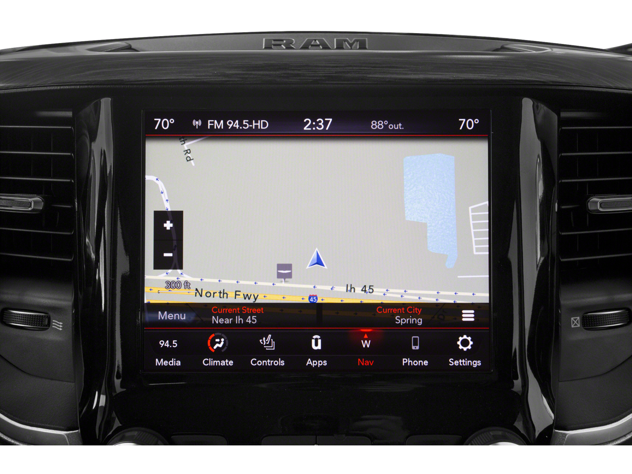 - Radio w/Seek-Scan, Clock, Speed Compensated Volume Control, Aux Audio Input Jack, Steering Wheel Controls, Voice Activation, Radio Data System and Uconnect External Memory Control