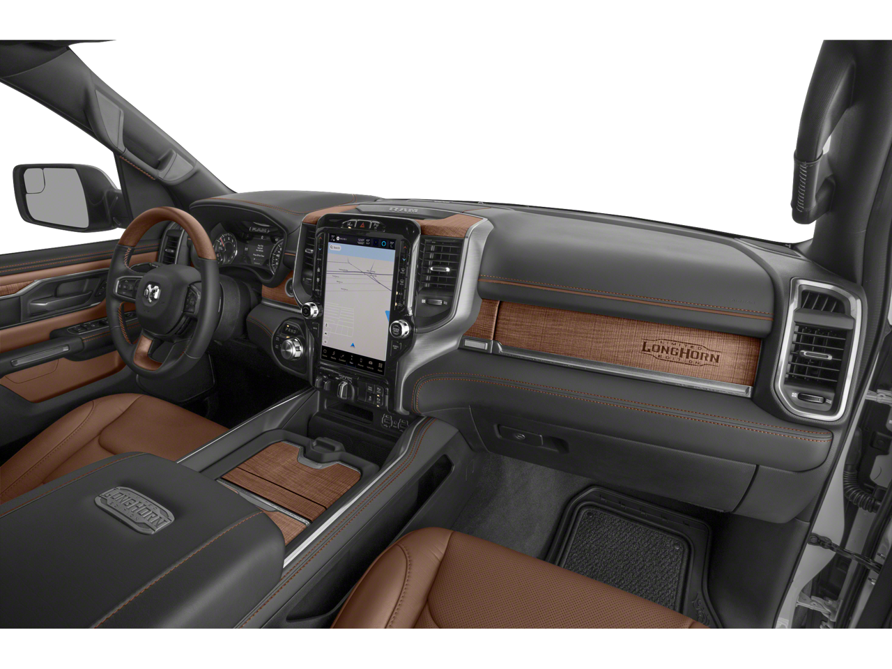 Vaden is pleased to offer this Bright White Clearcoat 2022 Ram 1500 Laramie Longhorn with Black/New Saddle Leather... Beautifully equipped with Longhorn Level 1 Equipment Group (12" Touchscreen Display, 4G LTE Wi-Fi Hot Spot, Adaptive Cruise Control w/Stop & Go, All R1 High Radios, All Radio Equipped Vehicles, Apple CarPlay, Auto-Dimming Exterior Passenger Mirror, Blind Spot & Cross Path Detection, Connected Travel & Traffic Services, Connectivity - US/Canada, Digital Rearview Mirror, Disassociated Touchscreen Display, For Details, Visit DriveUconnect.com, For More Info, Call 800-643-2112, Global Telematics Box Module (TBM), Google Android Auto, GPS Antenna Input, GPS Navigation, harman/kardon 19 Speaker Premium Sound, HD Radio, Heads-Up Display, Integrated Center Stack Radio, Integrated Voice Command w/Bluetooth®, Lane Keep Assist, LED CHMSL Lamp, Parallel & Perp Park Assist w/Stop, Pedestrian Emergency Braking, Power Running Boards, Radio: Uconnect 5 Nav w/12.0" Display, SiriusXM Radio Service, SiriusXM w/360L, Surround View Camera System, Tailgate Ajar Warning Lamp, USB Host Flip, Ventilated Rear Seats, and Wireless Charging Pad), Quick Order Package 25K Longhorn, Navigation System, #1 Seat Foam Cushion, 10 Speakers, 3 Rear Seat Head Restraints, 3.21 Rear Axle Ratio, 33 Gallon Fuel Tank, 4 Way Front Headrests, 4-Corner Air Suspension, 4-Wheel Disc Brakes, 48V Belt Starter Generator, ABS brakes, Adjustable pedals, Air Conditioning, Alloy wheels, AM/FM radio: SiriusXM, Anti-Spin Differential Rear Axle, Apple CarPlay/Android Auto, Audio memory, Auto High-beam Headlights, Auto-dimming door mirrors, Auto-dimming Rear-View mirror, Automatic temperature control, Brake assist, Bucket Seats, Bumpers: chrome, Chrome Exterior Mirrors, Compass, Delay-off headlights, Driver door bin, Driver Seat Memory, Driver vanity mirror, Dual front impact airbags, Dual front side impact airbags, Electronic Stability Control, Exterior Mirrors Courtesy Lamps, Exterior Mirrors w/Heating Element, Exterior Mirrors w/Memory, Exterior Mirrors w/Supplemental Signals, Front anti-roll bar, Front Bucket Seats, Front Center Armrest w/Storage, Front dual zone A/C, Front fog lights, Front License Plate Bracket, Front reading lights, Front Seat Back Map Pockets, Front wheel independent suspension, Full Length Premium Floor Console, Fully automatic headlights, Garage door transmitter, Genuine wood console insert, Genuine wood dashboard insert, Genuine wood door panel insert, Heated door mirrors, Heated Front Seats, Heated front seats, Heated rear seats, Heated Second Row Seats, Heated Steering Wheel, Heated steering wheel, Illuminated entry, Leather steering wheel, Leather Trimmed Bucket Seats, Low tire pressure warning, Memory seat, Occupant sensing airbag, Outside temperature display, Overhead airbag, Overhead console, Panic alarm, ParkView Rear Back-Up Camera, Passenger door bin, Passenger vanity mirror, Pedal memory, Power 4-Way Driver Lumbar Adjust, Power 4-Way Passenger Lumbar Adjust, Power 8-Way Driver & Passenger Seats, Power door mirrors, Power driver seat, Power passenger seat, Power steering, Power windows, Power-Folding Mirrors, Radio data system, Radio: Uconnect 5 Nav w/8.4" Display, Rain sensing wipers, Rear 60/40 Folding Split Recline Seat, Rear anti-roll bar, Rear seat center armrest, Rear step bumper, Rear window defroster, Remote keyless entry, Security system, Speed control, Split folding rear seat, Steering wheel mounted audio controls, Tachometer, Telescoping steering wheel, Tilt steering wheel, Traction control, Trailer Brake Control, Trip computer, Turn signal indicator mirrors, Variably intermittent wipers, Ventilated Front Seats, Ventilated front seats, Voltmeter, Wheels: 20" x 9" Aluminum Painted/Polished, and Wheels: 22" x 9" Polish/Painted w/Inserts! Approved customer communicated additions (repairing minor cosmetic flaw, added accessories, etc.) prior to delivery will be subject to additional charges.
