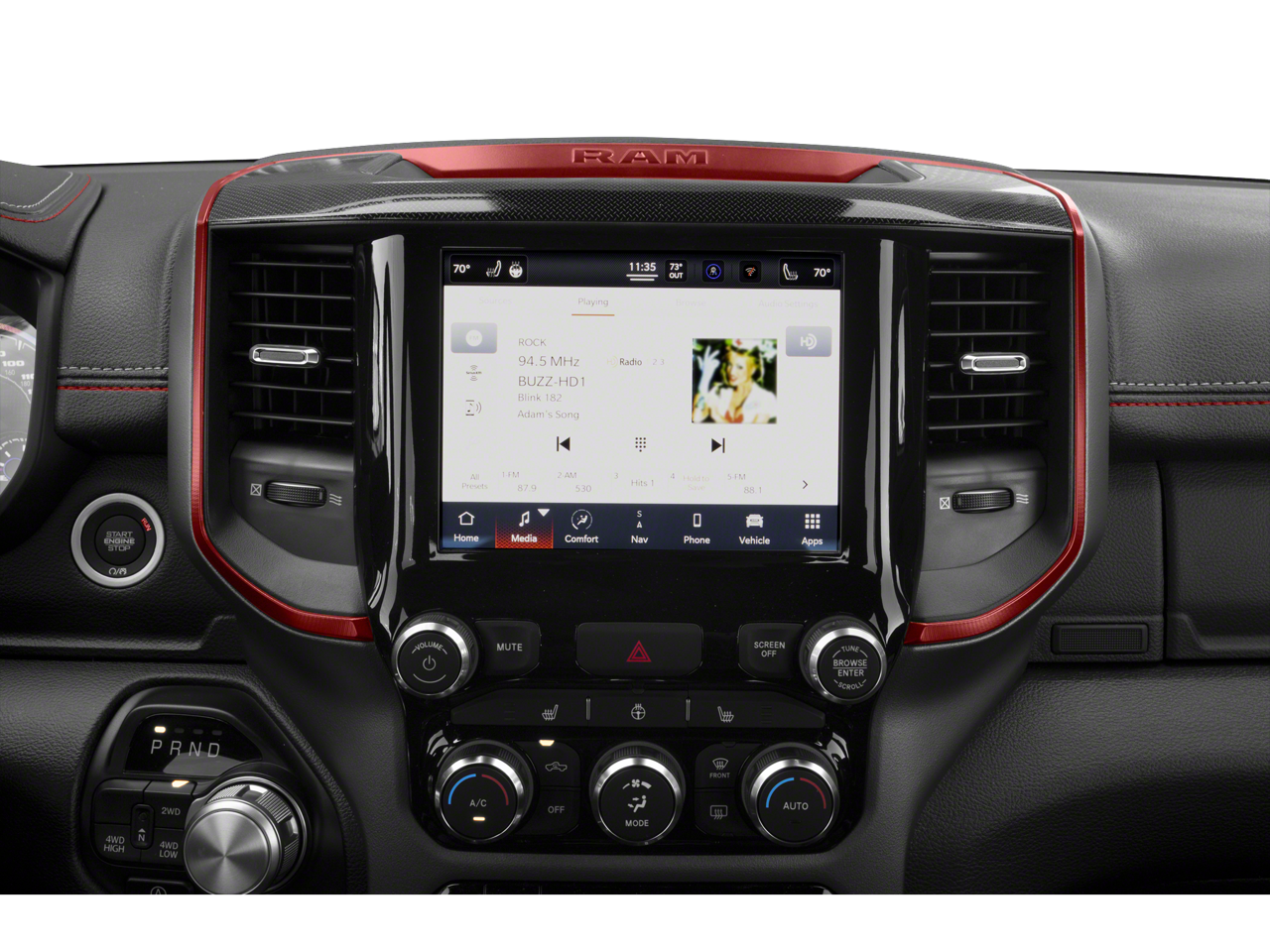 This Ram 1500 comes equipped with Remote Start for convenience on busy mornings and Rear Parking Sensors to make tight spots stress-free. The Off-Road Package elevates capability with off-road-tuned suspension and protective features designed to tackle trails and rough terrain with confidence. Stay connected on every drive via Android Auto and Hands-Free Bluetooth®, keeping navigation, calls, and music accessible and safe.