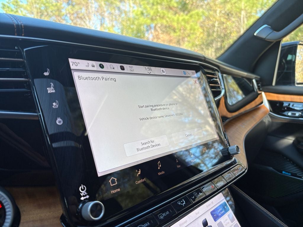 Never get into a cold vehicle again with the remote start feature on this vehicle. Protect the vehicle from unwanted accidents with a cutting edge backup camera system. The installed navigation system will keep you on the right path. Our dealership has already run the CARFAX report and it is clean. A clean CARFAX is a great asset for resale value in the future. The vehicle offers Android Auto for seamless smartphone integration. This 2024 Jeep Grand Wagoneer L has automated speed control that adjusts to maintain a safe following distance, enhancing highway driving convenience. The leather seats in this model are a must for buyers looking for comfort, durability, and style. Bluetooth® technology is built into it, keeping your hands on the steering wheel and your focus on the road. This vehicle is a certified CARFAX 1-owner. This unit is pure luxury with a heated steering wheel. Apple CarPlay: Seamless smartphone integration for the vehicle - stay connected and entertained on the go!