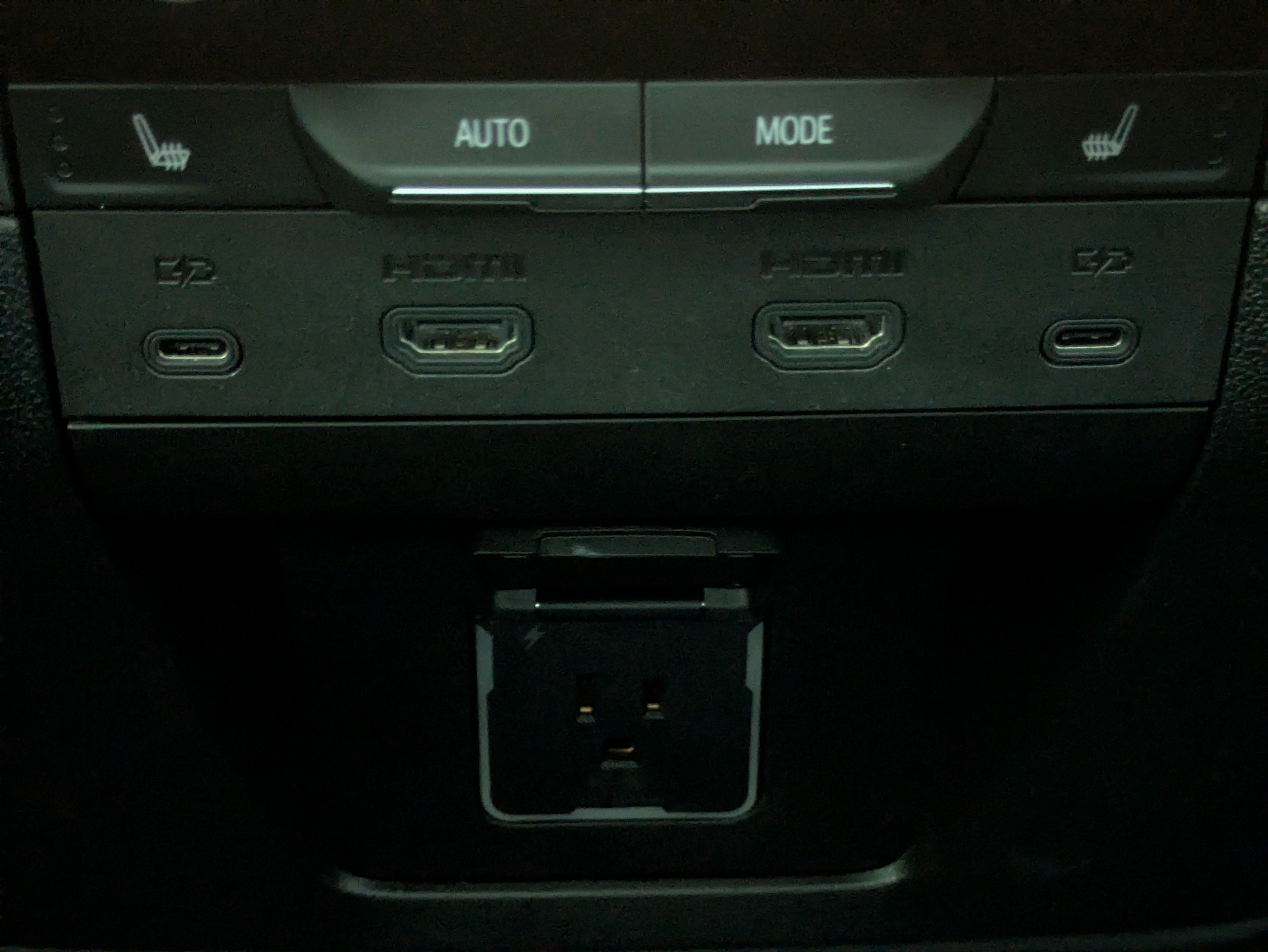- Two 2-channel wireless headphones with 2 HDMI ports on the back of the center console